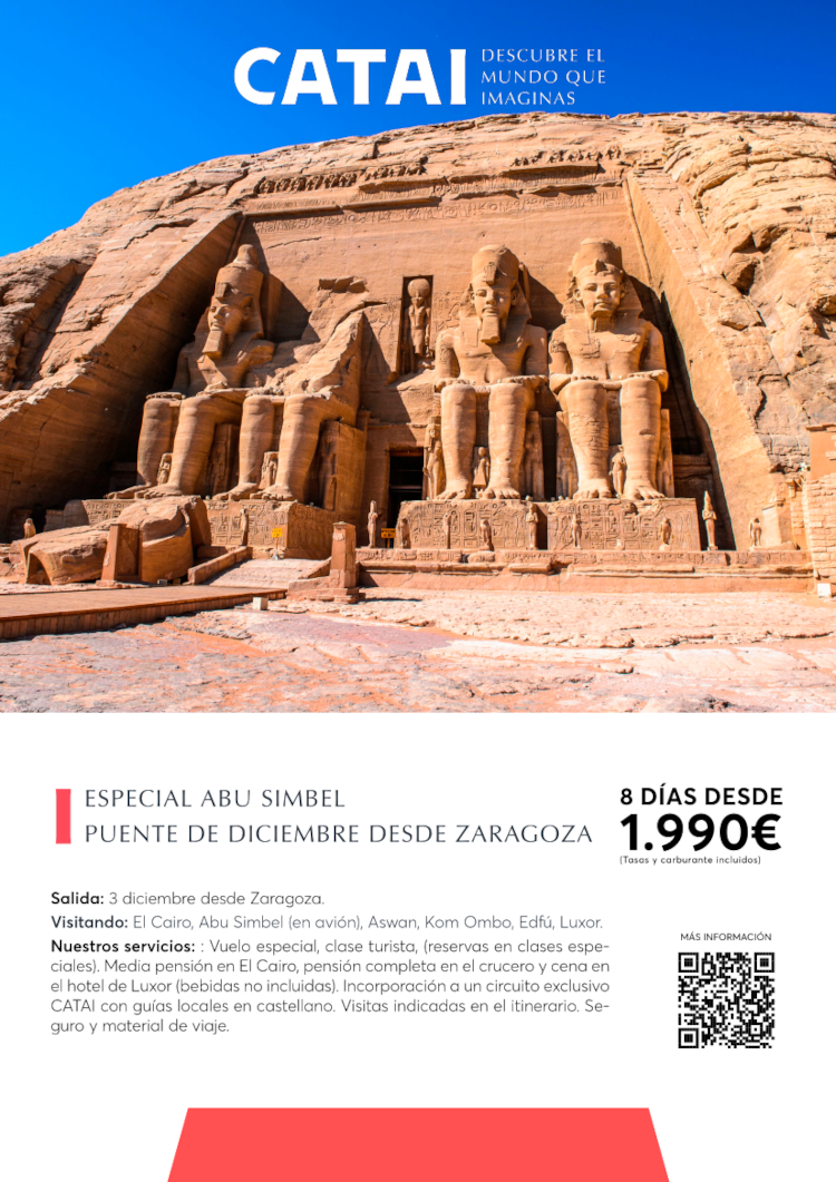 ÚLTIMAS PLAZAS EGIPTO 3 DE DICIEMBRE CON ABU SIMBEL EN AVIÓN DESDE ZARAGOZA