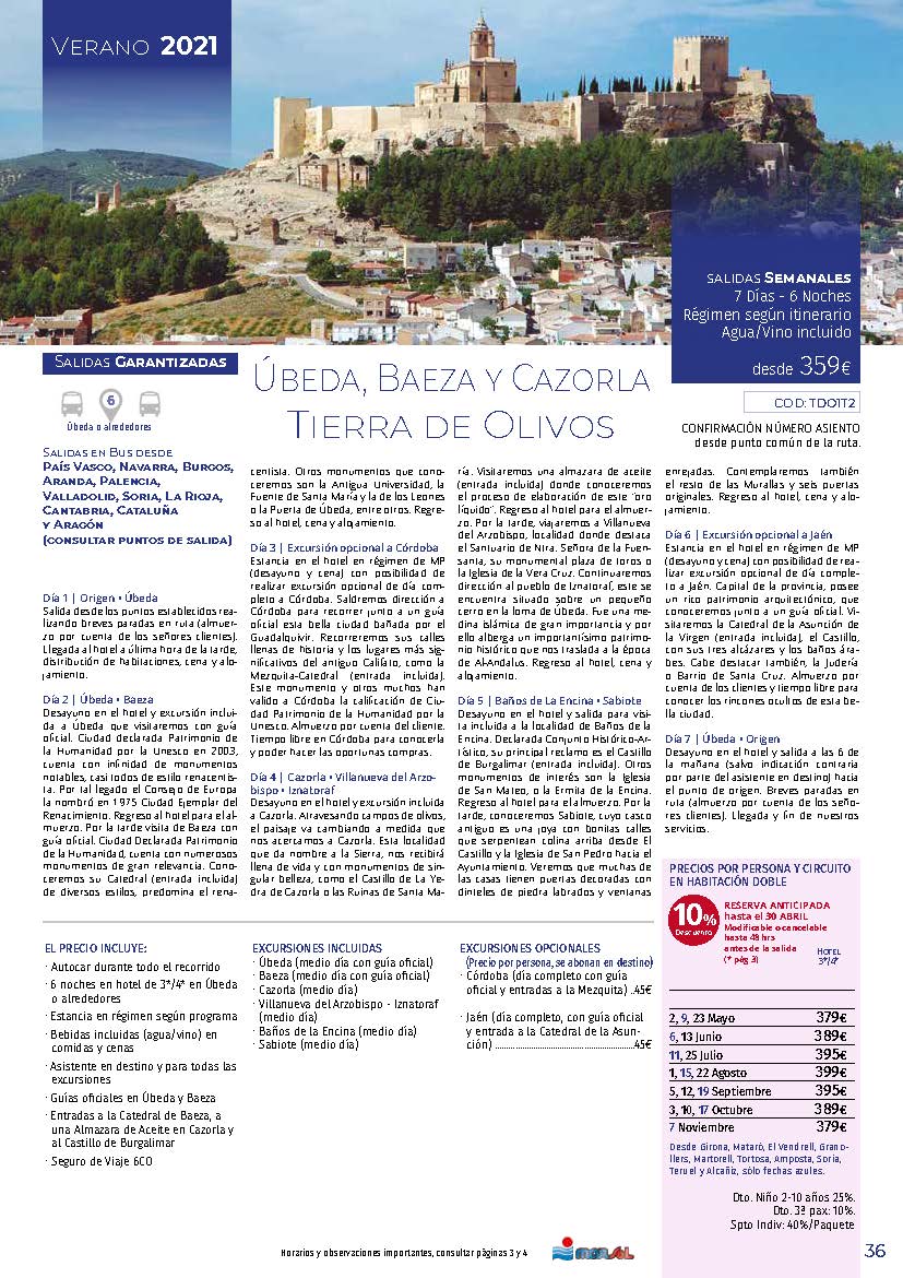 Circuito Úbeda, Baeza y Cazorla desde Zaragoza Verano 2021