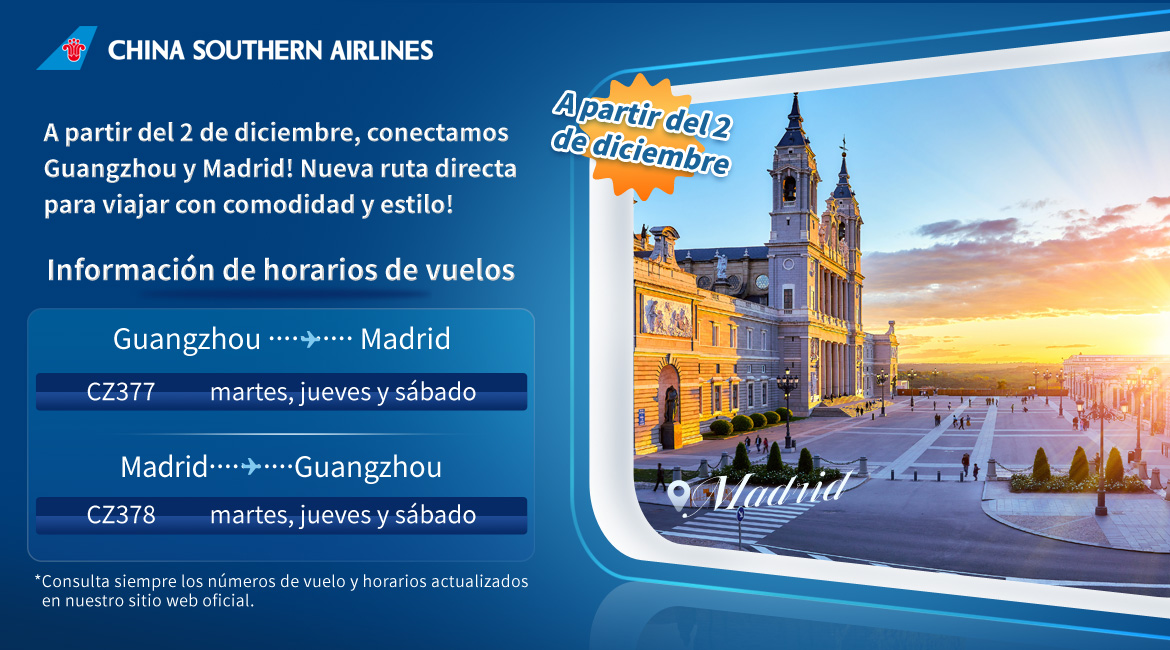 Nueva ruta directa entre Madrid y Guangzhou. ¡A partir del 2 de diciembre!