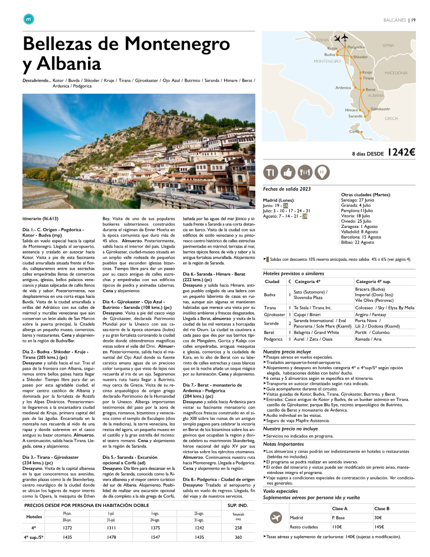 OFERTA BELLEZAS DE MONTENEGRO y ALBANIA SALIDA EL 1 DE AGOSTO DESDE ZARAGOZA