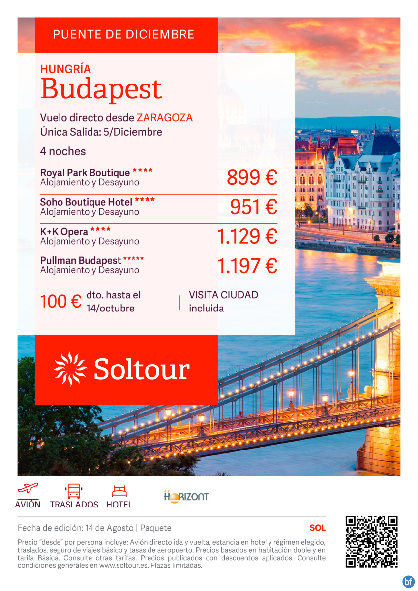 OFERTA BUDAPEST PUENTE DICIEMBRE EN VUELO ESPECIAL DESDE ZARAGOZA