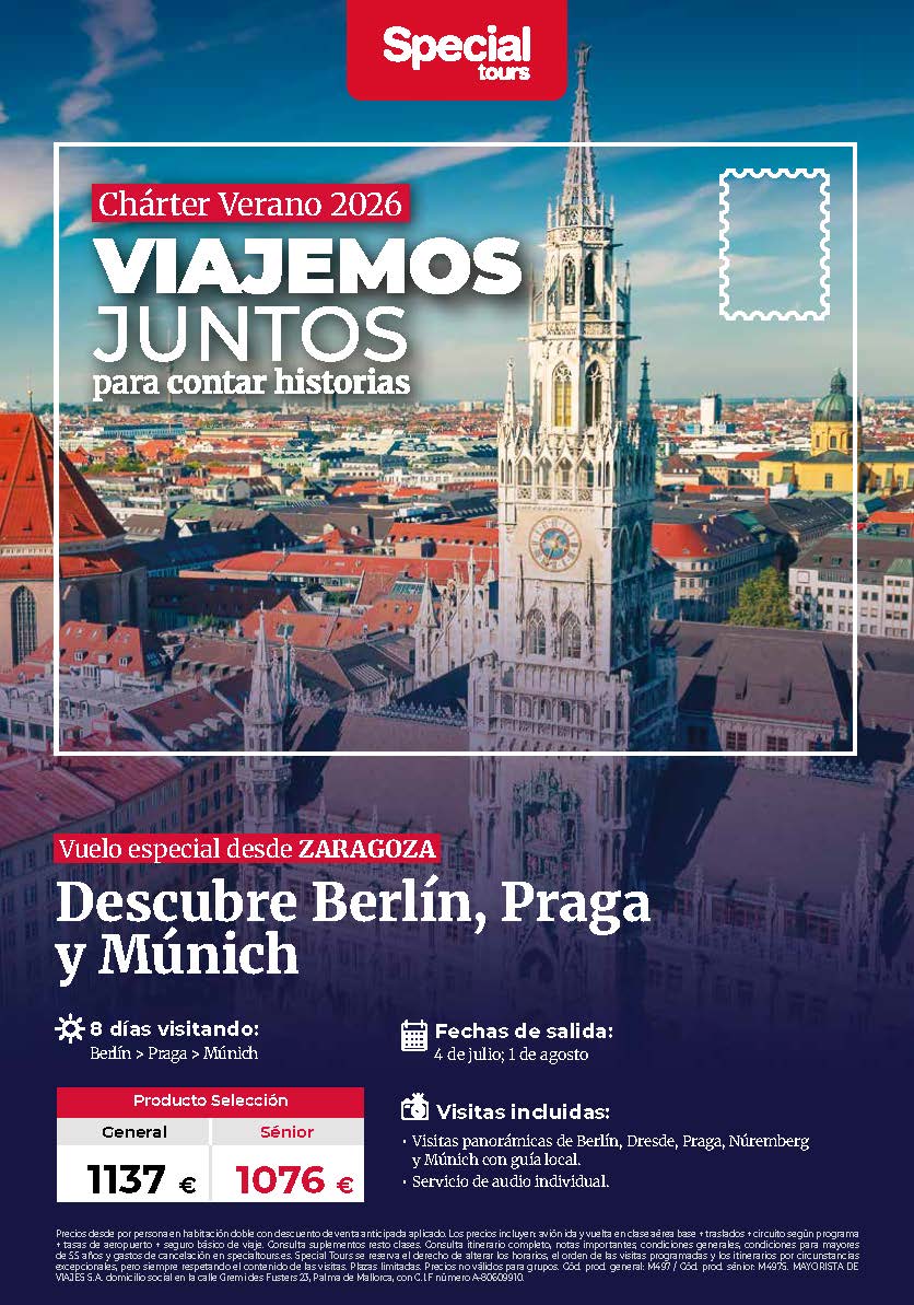 OFERTA DESCUBRE BERLÍN, PRAGA Y MÚNICH DESDE ZARAGOZA 4 JULIO Y 1 DE AGOSTO