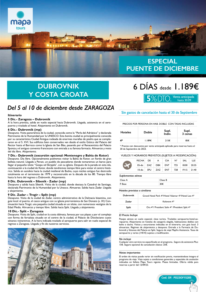 OFERTA DUBROVNIK COSTA CROATA ESTE PUENTE DE DICIEMBRE DESDE ZARAGOZA
