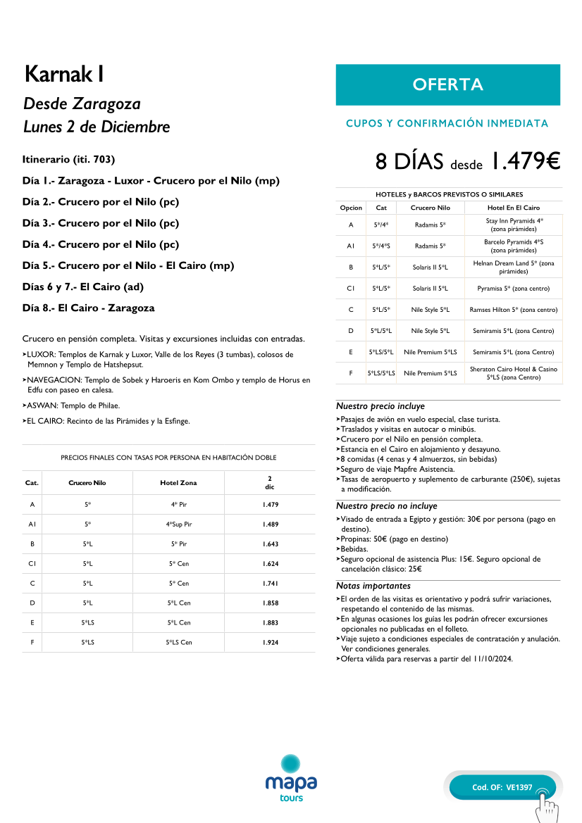 OFERTA EGIPTO KARNAK 2 de DICIEMBRE DESDE ZARAGOZA