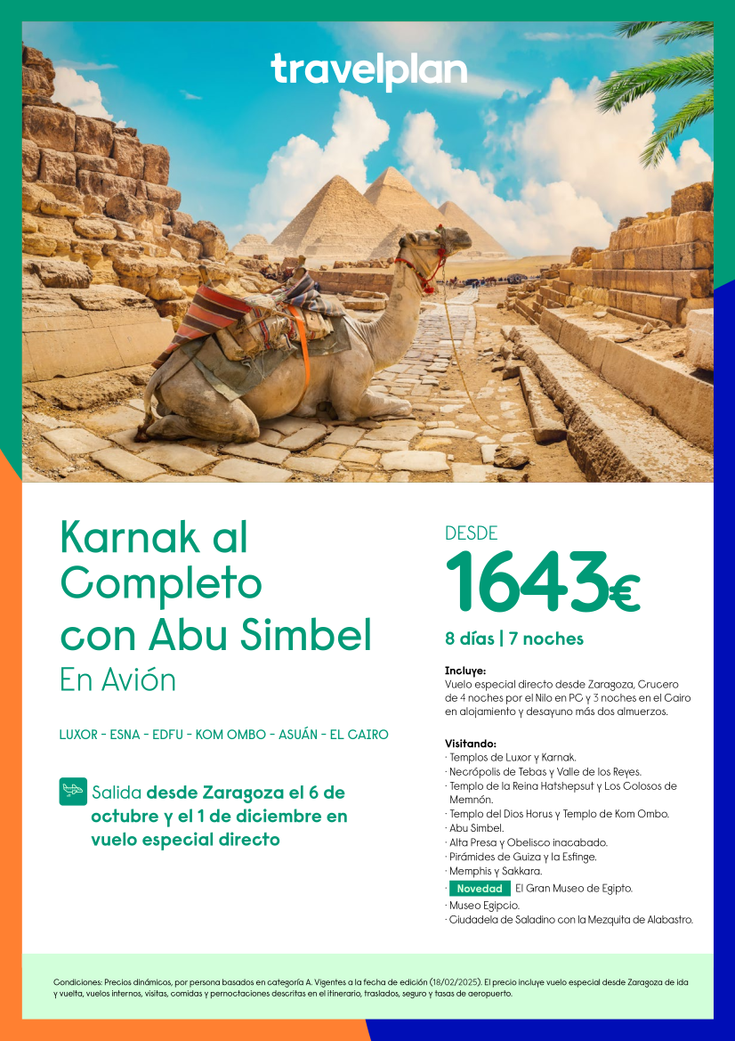 OFERTA EGIPTO, KARNAK Y ABU SIMBEL DESDE ZARAGOZA