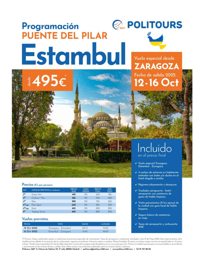 OFERTA ESTAMBUL PUENTE DEL PILAR DESDE ZARAGOZA VUELO DIRECTO