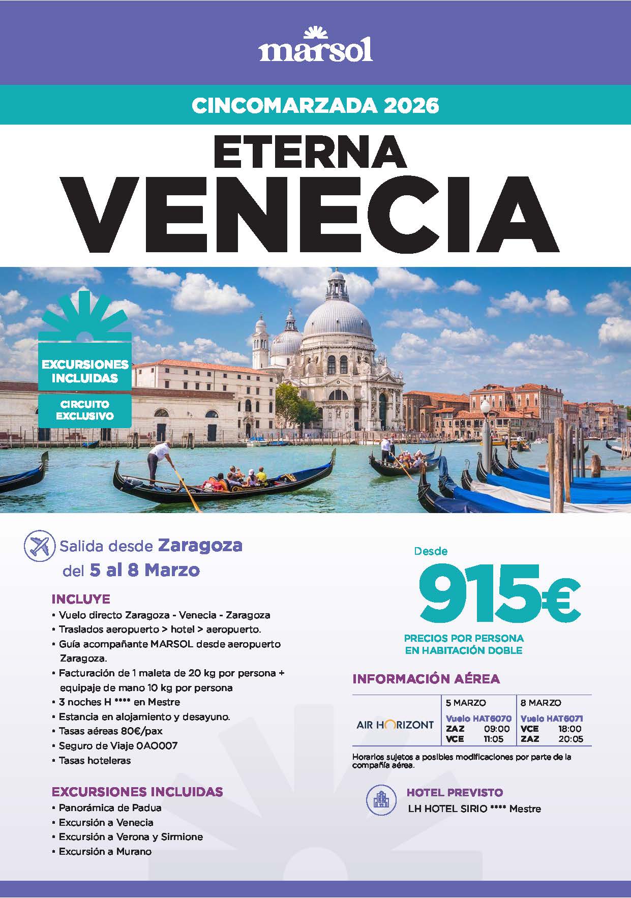 OFERTA ETERNA VENECIA DESDE ZARAGOZA CINCOMARZADA 2026