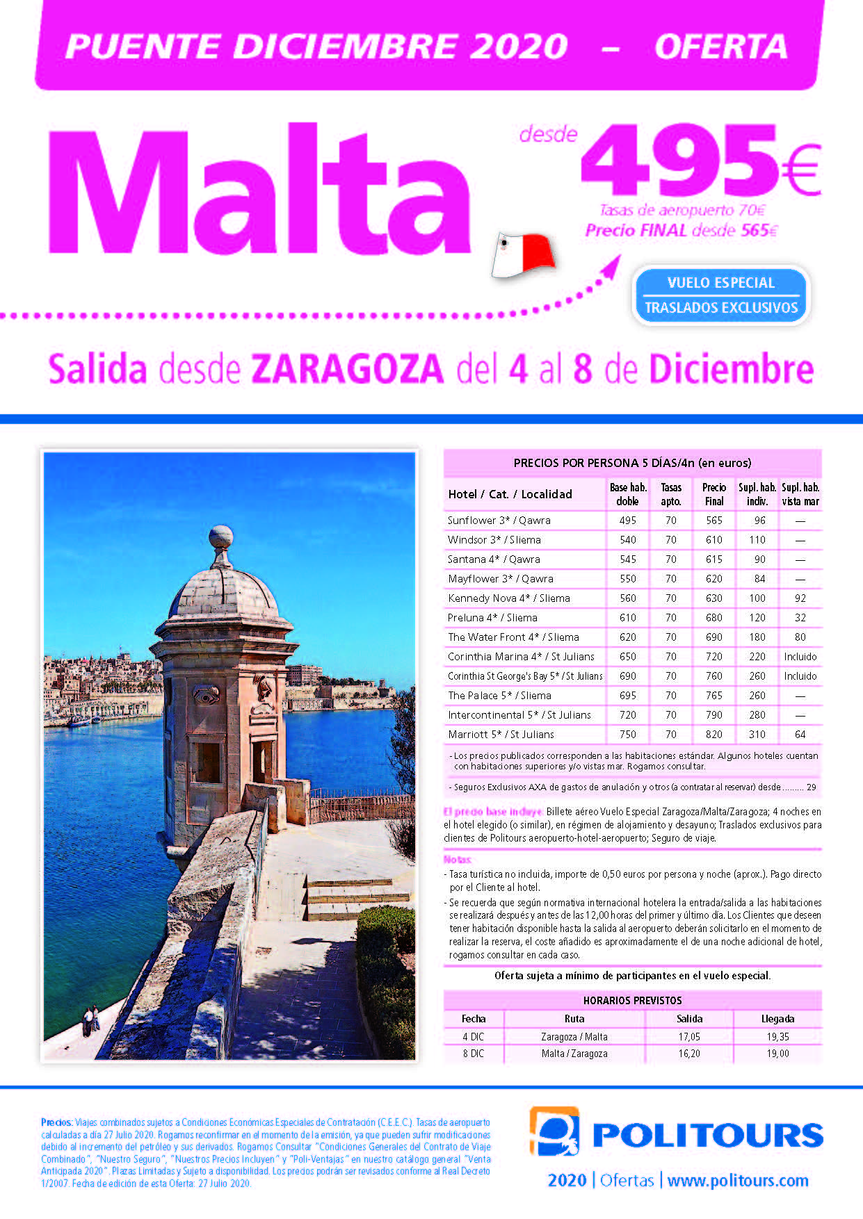 OFERTA MALTA PUENTE DE DICIEMBRE DESDE ZARAGOZA