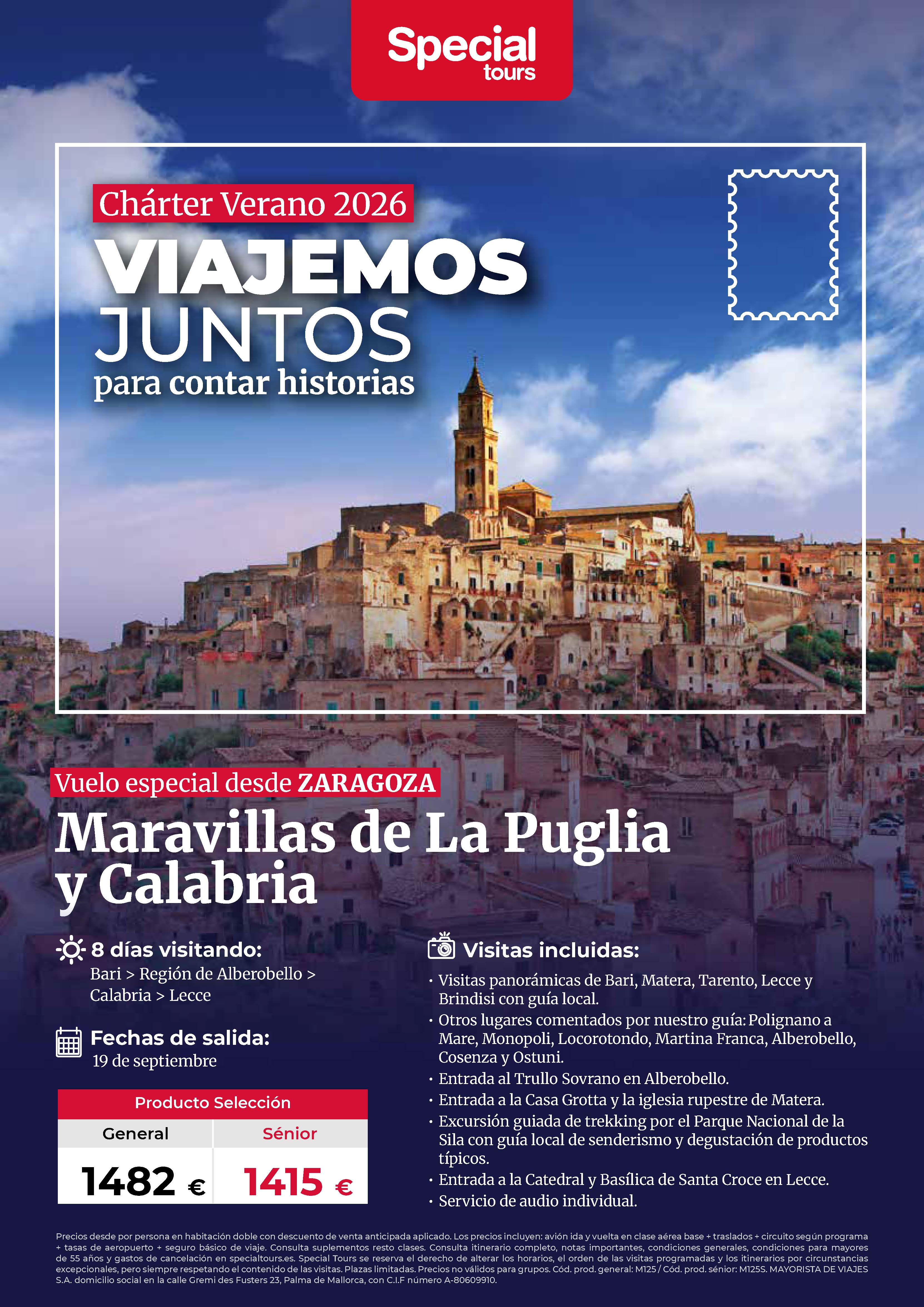 OFERTA MARAVILLAS DE LA PUGLIA Y CALABRIA DESDE ZARAGOZA