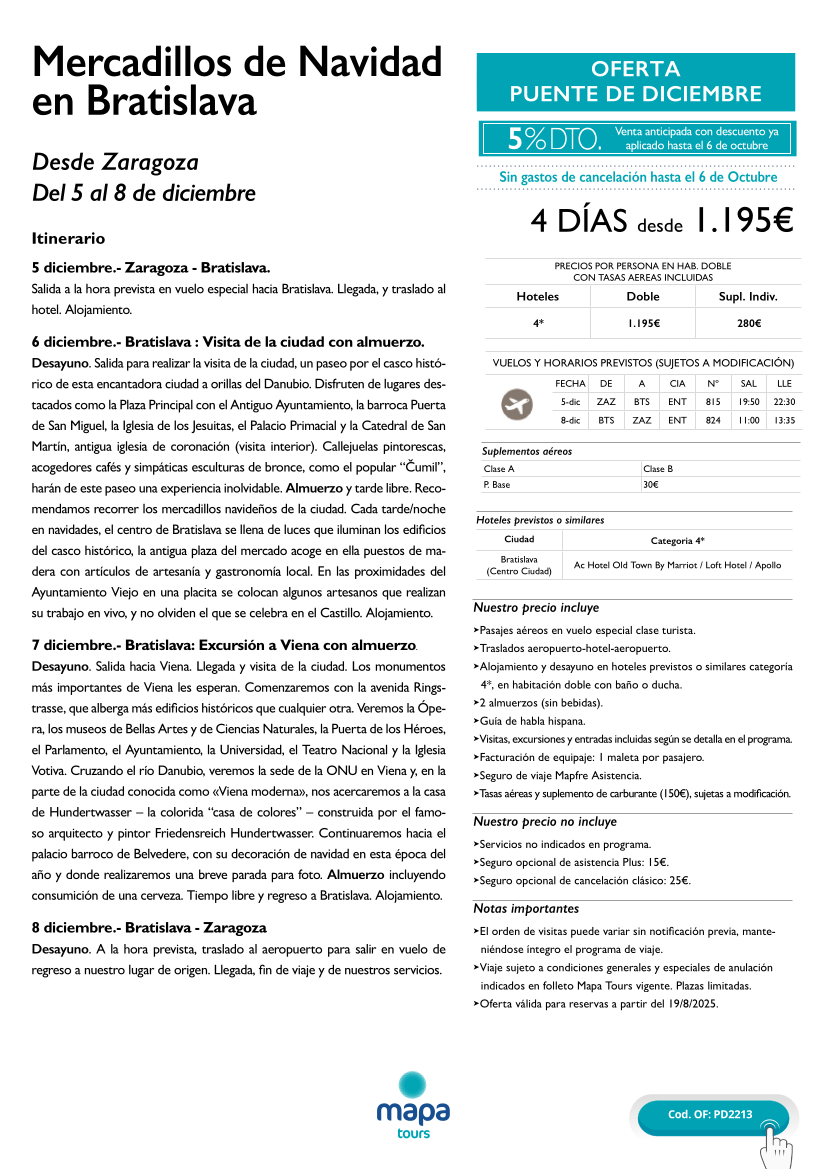 OFERTA MERCADILLOS DE NAVIDAD EN BRATISLAVA DESDE ZARAGOZA
