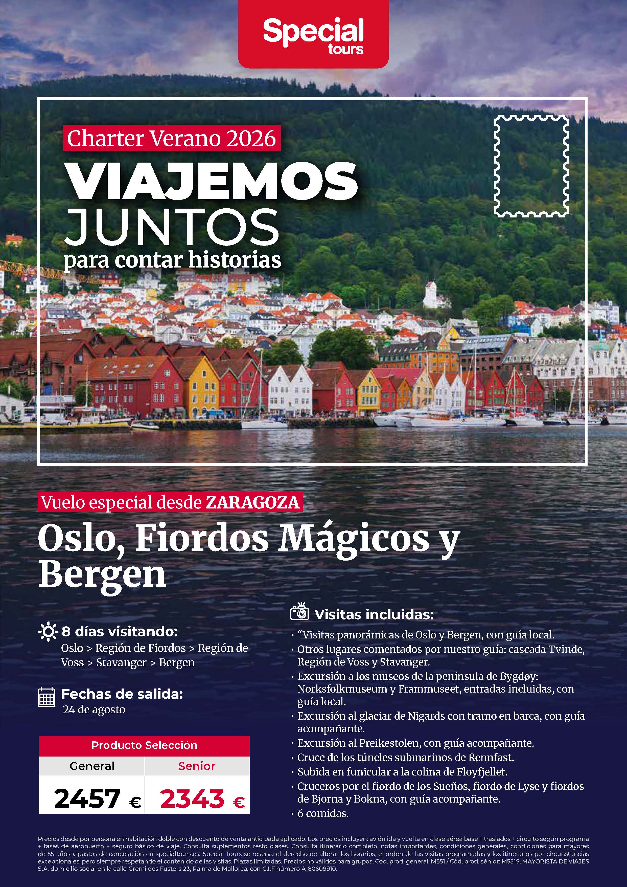 OFERTA OSLO, FIORDOS MÁGICOS Y BERGEN DESDE ZARAGOZA 24 DE AGOSTO 2026