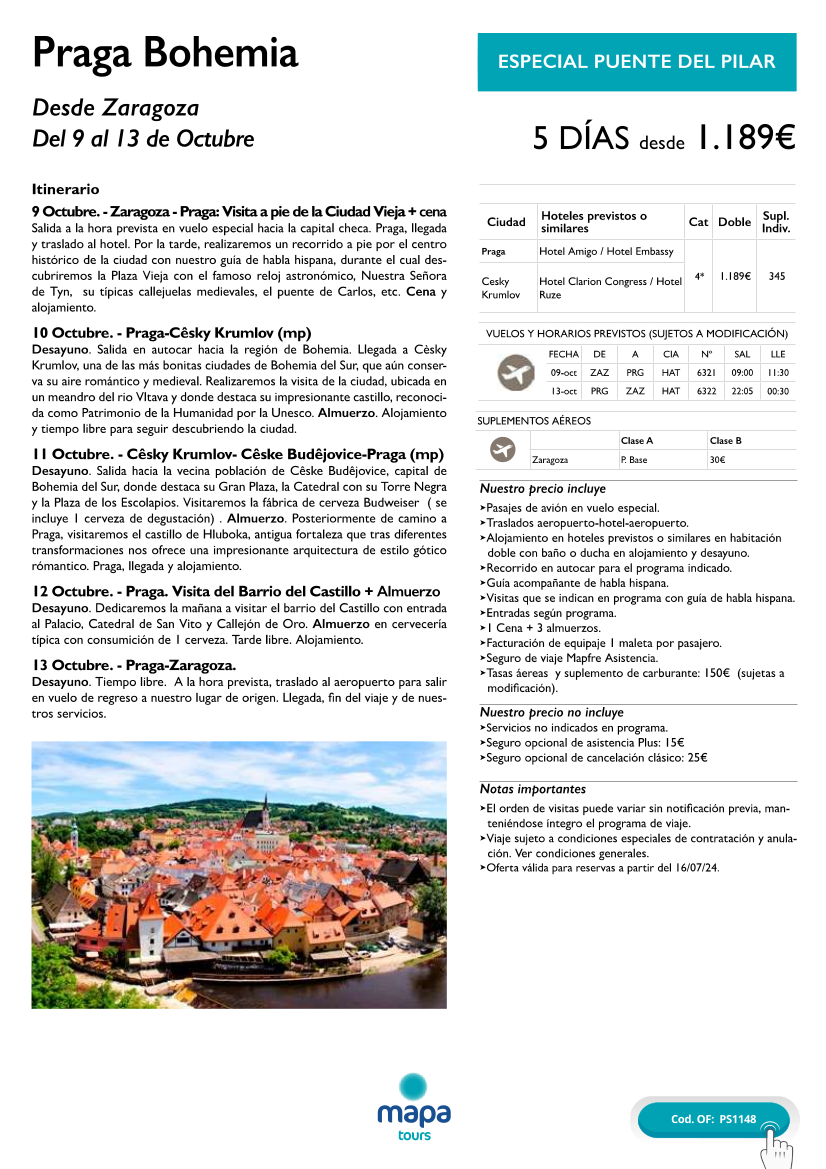 OFERTA PRAGA BOHEMIA AL COMPLETO SALIDA PUENTE DEL PILAR DESDE ZARAGOZA