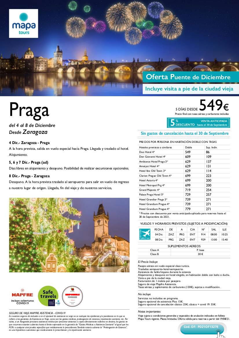 OFERTA PRAGA PUENTE DE LA CONSTITUCIÓN 2021. SALIDA EN VUELO DIRECTO DESDE ZARAGOZA