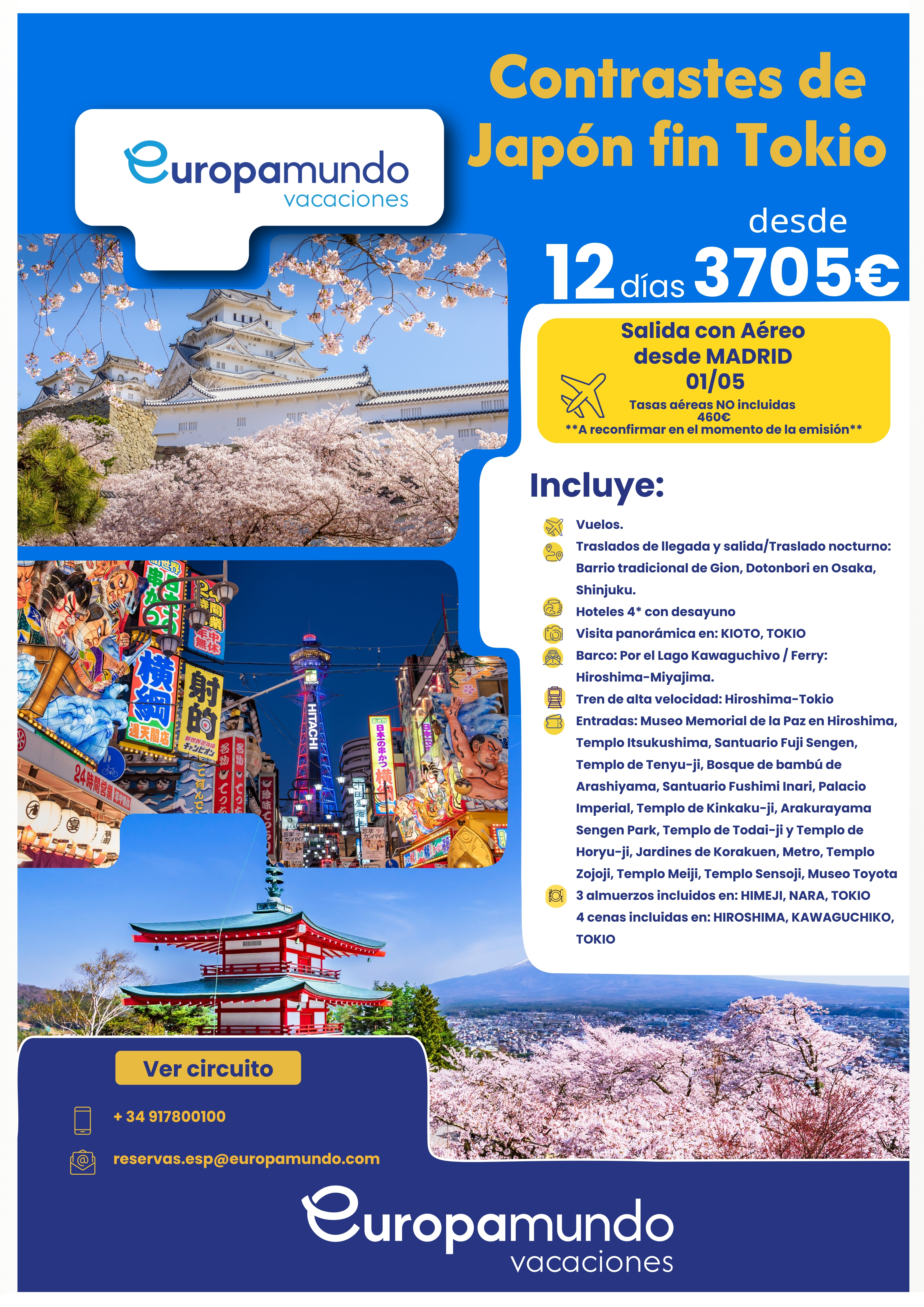 Salida Plaza a Plaza con vuelo desde Madrid. Contrastes de Japón fin Tokio